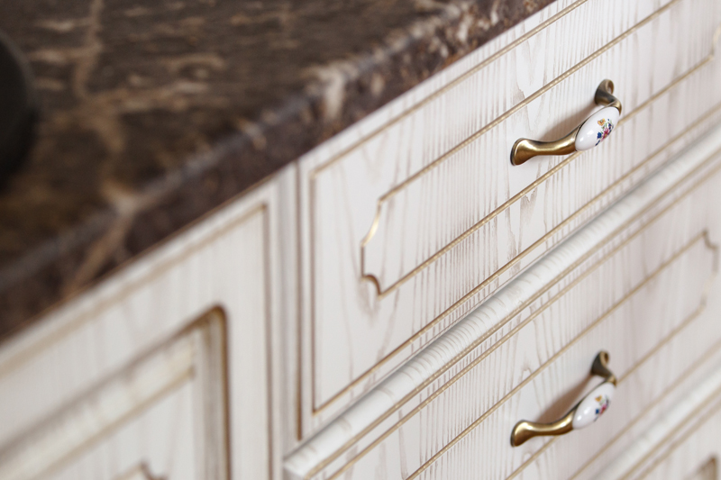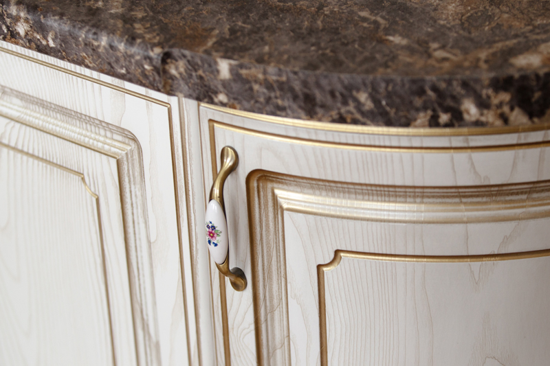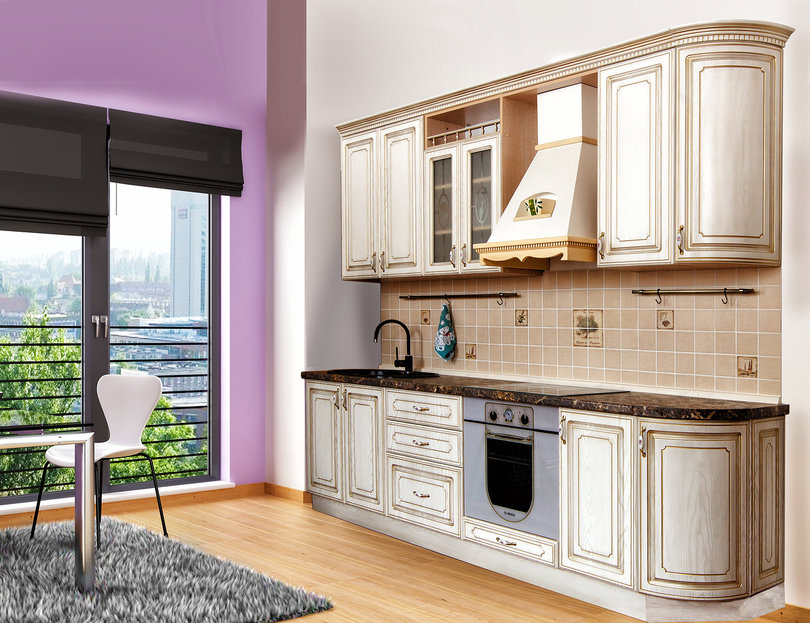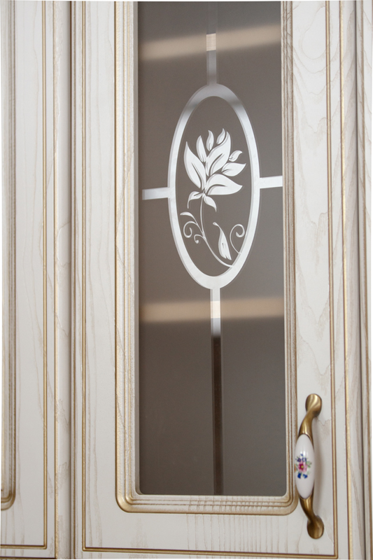 Классического стиля фасады кухни Анжелика выполнены из фрезерованной мдф, покрыты пленкой ПВХ, патина нанесена вручную и защищена сверху матовым итальянским лаком. В результате кухня выглядит гораздо дороже чем стоит. Это идеальный вариант для любителей классического стиля, для людей, умеющих считать свои деньги.