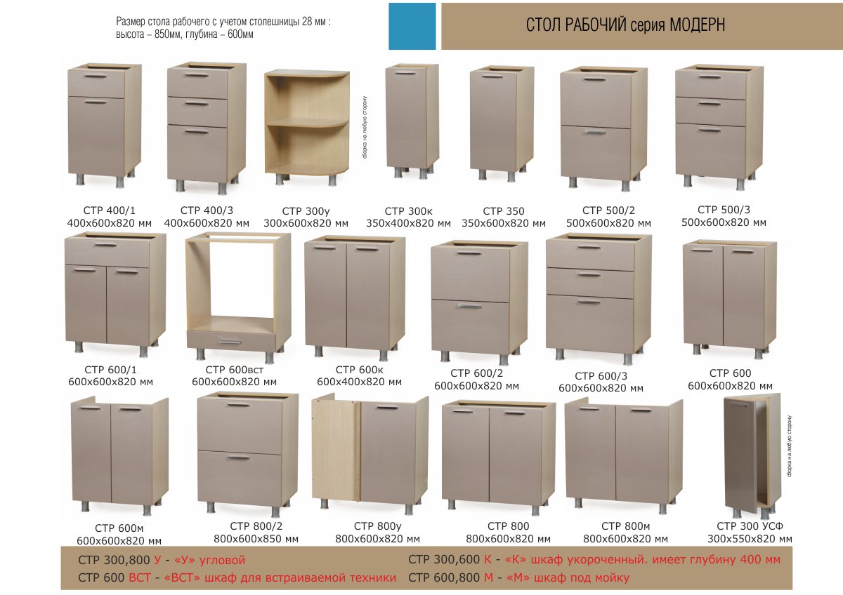 Из большого количества модулей Вы сможете подобрать комплект мебели для кухни по функциональности и размерам подходящий именно Вам.