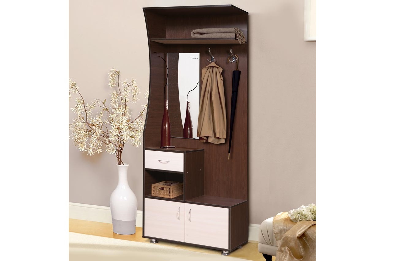 Эргономичная прихожая совмещает в себе всё необходимое и при этом занимает минимум пространства. В ней есть и отделение для обуви, и полка для головных уборов, и множество крючков для одежды, а также зеркало и небольшой ящик для ключей и прочих мелких вещей.