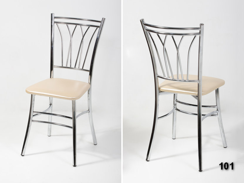 Каркас стула изготовлен из стальной трубы, с дополнительной сваркой в квадрат под сиденьем и нижними перетяжками, является прочным и надежным.